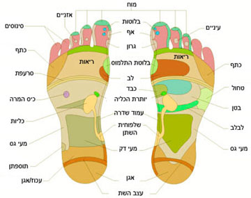 מקלעת השמש (מרכז הסרעפת) היא מרכז עצבי מרכזי בכל טיפול רפלקסולוגי. כדי לשחררה נתחיל בעיסוי עדין נגד כיוון השעון לשחרור מתחים, כעסים ופחדים, ונעבור לעיסוי עם כיוון השעון להרגעה והטענת אנרגיה. נוריד את האנרגיה מהראש לכיוון הרגליים במטרה להפחית את עומס המחשבה ולהביא את הילד להירגע מאירועי היום. כיוון העיסוי מהאצבעות (כל אחת בנפרד) כלפי מטה עד לאזור העקב, בלחיצות של זחל. נעניק בסוף תחושת ביטחון לסיום, כשהילד כבר רגוע ונינוח, אולי אפילו נרדם, נרים קלות את כפות רגליו, כך שכובד המשקל יהיה על ידינו. נאחז את העקב בחיבוק. זו אחת האחיזות הנפלאות, המעניקה תחושת ביטחון. כשילדנו ירגיש דרך המגע שלנו עד כמה הוא באמת חשוב לנו, הוא בוודאי יישן טוב יותר בלילה ויהיה מרוכז יותר וקשוב במהלך היום, וכמובן, שמח ואהוב.